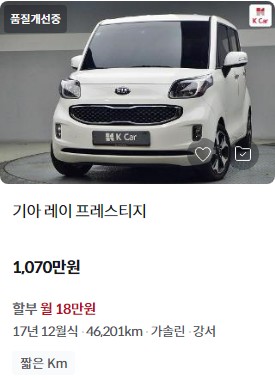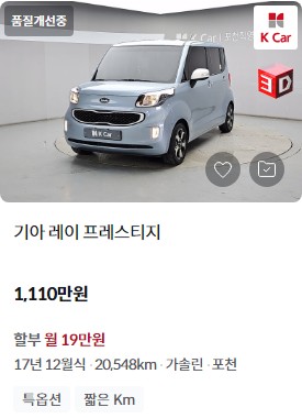 2017년식 레이는 790만 원에서 1,110만 원 사이에서 거래되고 있습니다. 시간이 지남에 따라 가격이 낮아졌지만, 여전히 중고차 시장에서 경제적인 선택지로 각광받고 있습니다.