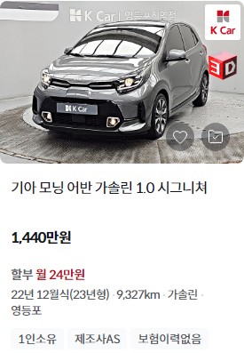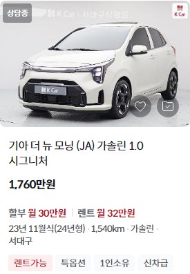 2024년식 더 뉴 모닝은 K Car 실매물에서 1,100만원에서 1,640만원 사이의 가격대로 거래되고 있으며, 최신의 안전 및 편의 기능을 포함하고 있습니다. 특히, 소형차이지만 다양한 첨단 운전자 보조 시스템이 포함되어 있어 안전성과 편의성을 높였습니다.