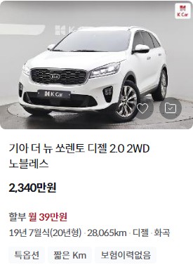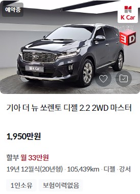 2020년식 더 뉴 쏘렌토는 1,810만원에서 2,780만원 사이에 실매물로 거래되고 있으며, 저렴한 가격에 중형 SUV의 장점을 누릴 수 있는 좋은 선택지입니다.