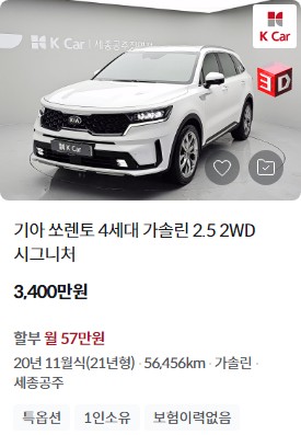 2020년식 쏘렌토 4세대는 3,160만원에서 3,640만원 사이에서 실매물로 거래되고 있으며, 출시된 지 몇 년이 지났지만 여전히 우수한 성능을 자랑하며 중고차 시장에서 꾸준히 인기를 끌고 있습니다.