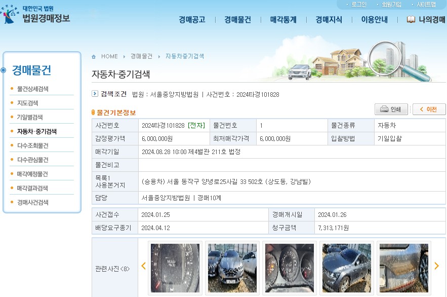 법원경매정보는 대한민국 법원에서 운영하는 무료 경매 사이트입니다. 자료 열람이 다소 불편할 수 있지만, 유료 사이트와 동일하게 다양한 매물을 확인할 수 있습니다. 자동차 경매의 경우, 권리분석이나 사건 정보를 부동산처럼 많이 고려할 필요가 없기 때문에, 무료 사이트를 활용하는 것도 좋은 방법입니다.