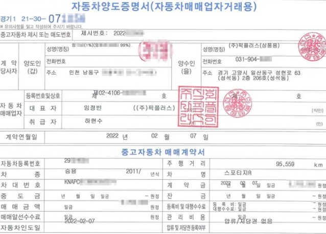 - 계약서, 성능 점검 기록부, 성능 보증서는 필수! 차량을 출고할 때 이 서류들은 반드시 챙겨야 합니다. 이 서류들이 없으면 차량 구매 후 문제가 생겼을 때 대응하기가 어렵습니다.